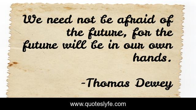 This page presents the quote "We need not be afraid of the future, for the future will be in our own hands.". Author of this quote is Thomas Dewey. This quote is about need, hands,.