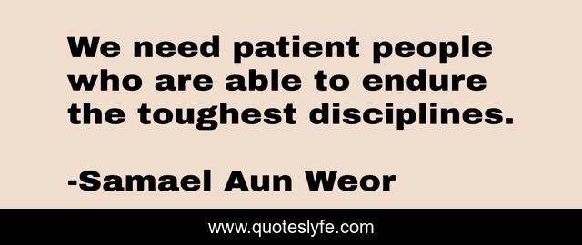 This page presents the quote "We need patient people who are able to endure the toughest disciplines.". Author of this quote is Samael Aun Weor. This quote is about discipline, patience,.