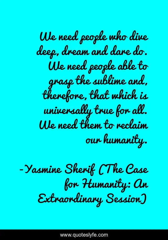 "Yasmine Sherif (The Case for Humanity: An Extraordinary Session) Quotes." Quoteslyfe.com, 2025. Fri. 05 Dec. 2025. <https://www.quoteslyfe.com/quote/We-need-people-who-dive-deep-dream-91712>.