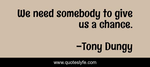 This page presents the quote "We need somebody to give us a chance.". Author of this quote is Tony Dungy. This quote is about need, us, give,.