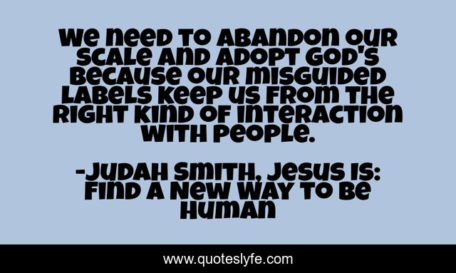 This page presents the quote "We need to abandon our scale and adopt God's because our misguided labels keep us from the right kind of interaction with people.". Author of this quote is Judah Smith, Jesus Is: Find a New Way to Be Human. This quote is about god, label,.