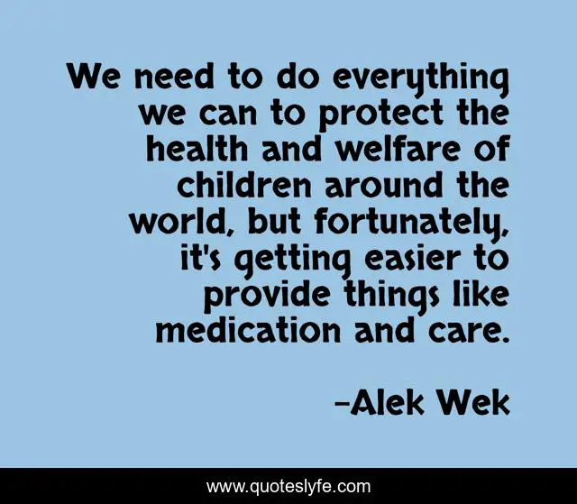 This page presents the quote "We need to do everything we can to protect the health and welfare of children around the world, but fortunately, it's getting easier to provide things like medication and care.". Author of this quote is Alek Wek. This quote is about world, children, care,.