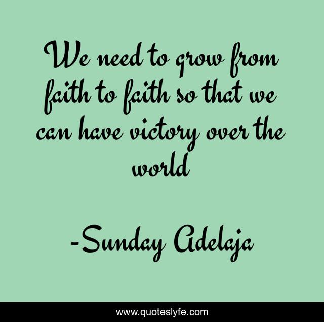 This page presents the quote "We need to grow from faith to faith so that we can have victory over the world". Author of this quote is Sunday Adelaja. This quote is about faith, victory, grow, world,.