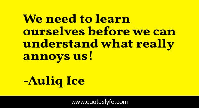 This page presents the quote "We need to learn ourselves before we can understand what really annoys us!". Author of this quote is Auliq Ice. This quote is about confidence, love, learning-from-mistakes, personal-growth, learning-from-others, change, happiness, curiosity, conflict-resolution,.