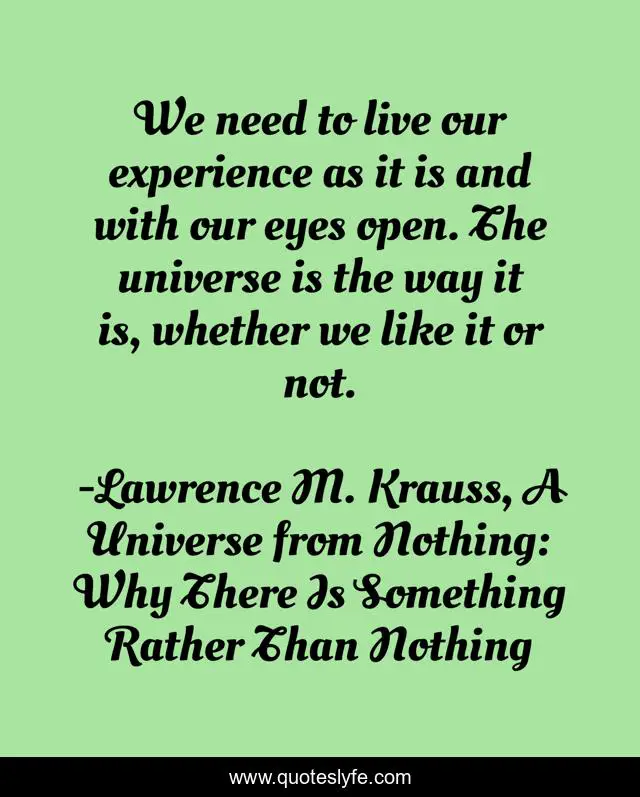 "Lawrence M. Krauss, A Universe from Nothing: Why There Is Something Rather Than Nothing Quotes." Quoteslyfe.com, 2025. Fri. 05 Dec. 2025. <https://www.quoteslyfe.com/quote/We-need-to-live-our-experience-as-158599>.