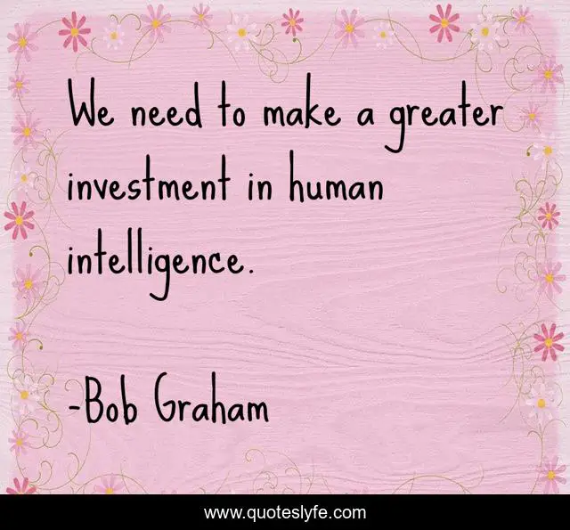 This page presents the quote "We need to make a greater investment in human intelligence.". Author of this quote is Bob Graham. This quote is about need, investment, human,.