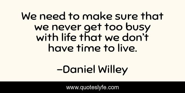 This page presents the quote "We need to make sure that we never get too busy with life that we don’t have time to live.". Author of this quote is Daniel Willey. This quote is about life, busy, live, priorities, time,.