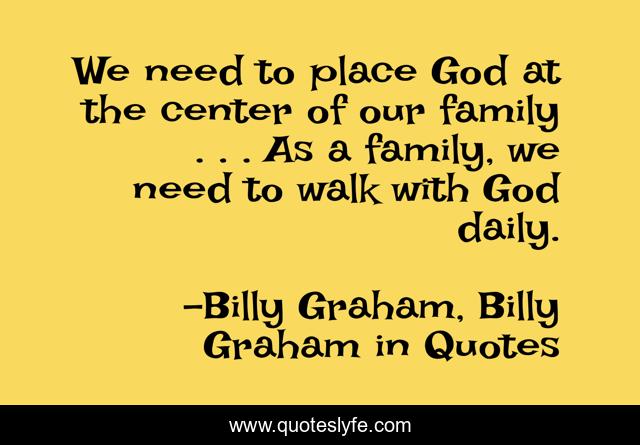 This page presents the quote "We need to place God at the center of our family . . . As a family, we need to walk with God daily.". Author of this quote is Billy Graham, Billy Graham in Quotes. This quote is about family, billy-graham,.