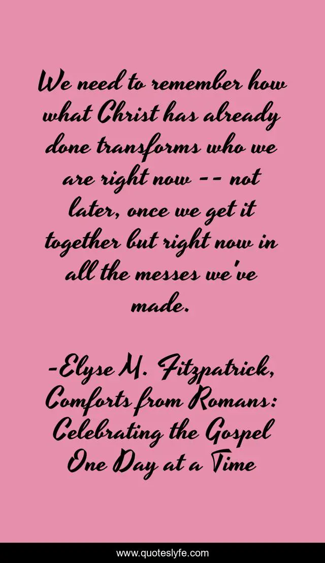 "Elyse M. Fitzpatrick, Comforts from Romans: Celebrating the Gospel One Day at a Time Quotes." Quoteslyfe.com, 2025. Fri. 05 Dec. 2025. <https://www.quoteslyfe.com/quote/We-need-to-remember-how-what-Christ-206313>.