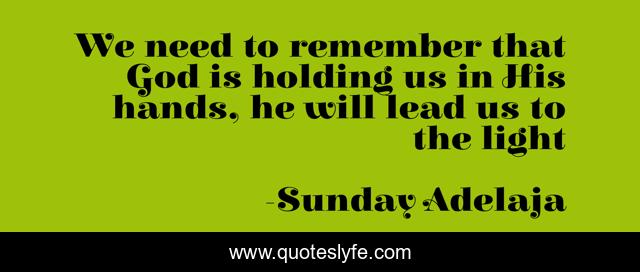 This page presents the quote "We need to remember that God is holding us in His hands, he will lead us to the light". Author of this quote is Sunday Adelaja. This quote is about remember, lead, god, hand, holding, light,.