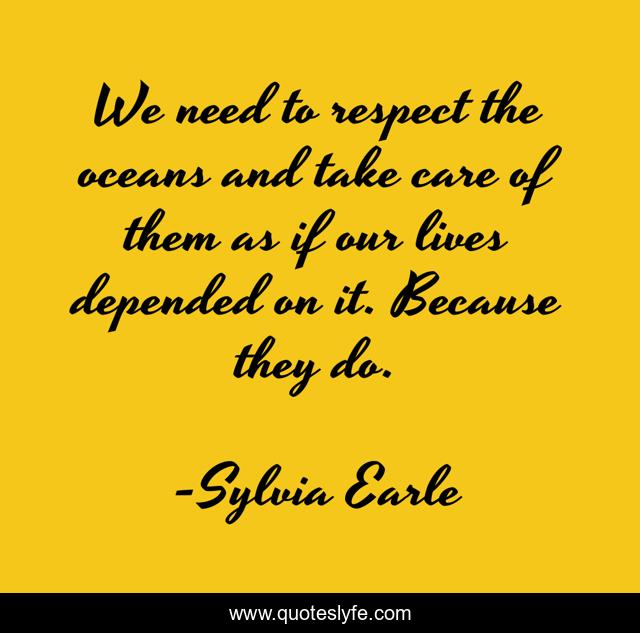 This page presents the quote "We need to respect the oceans and take care of them as if our lives depended on it. Because they do.". Author of this quote is Sylvia Earle. This quote is about need, take care, care,.