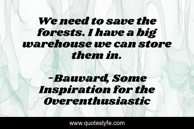 "Bauvard, Some Inspiration for the Overenthusiastic Quotes." Quoteslyfe.com, 2025. Fri. 05 Dec. 2025. <https://www.quoteslyfe.com/quote/We-need-to-save-the-forests-I-40791>.