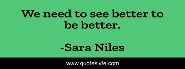 This page presents the quote "We need to see better to be better.". Author of this quote is Sara Niles. This quote is about philosophy-of-life, insights,.
