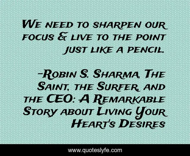 "Robin S. Sharma, The Saint, the Surfer, and the CEO: A Remarkable Story about Living Your Heart's Desires Quotes." Quoteslyfe.com, 2025. Sun. 07 Dec. 2025. <https://www.quoteslyfe.com/quote/We-need-to-sharpen-our-focus-live-243153>.