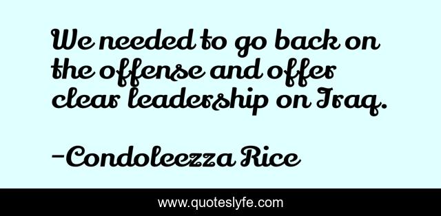This page presents the quote "We needed to go back on the offense and offer clear leadership on Iraq.". Author of this quote is Condoleezza Rice. This quote is about go, offense, back,.