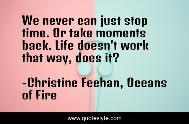 This page presents the quote "We never can just stop time. Or take moments back. Life doesn't work that way, does it?". Author of this quote is Christine Feehan, Oceans of Fire. This quote is about moments, life,.