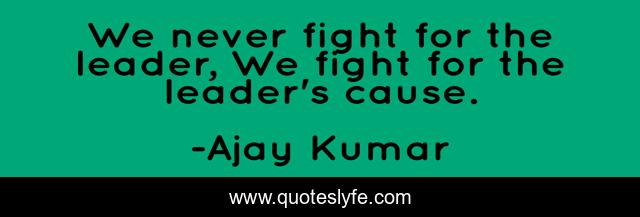 This page presents the quote "We never fight for the leader, We fight for the leader's cause.". Author of this quote is Ajay Kumar. This quote is about positive, confidence, motivational, optimistic,.