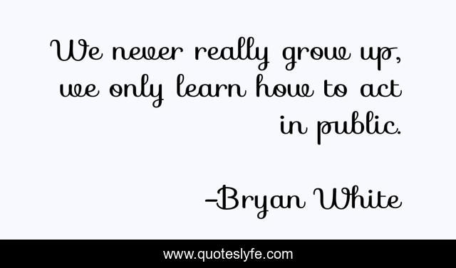 This page presents the quote "We never really grow up, we only learn how to act in public.". Author of this quote is Bryan White. This quote is about grow up, grow, learn,.