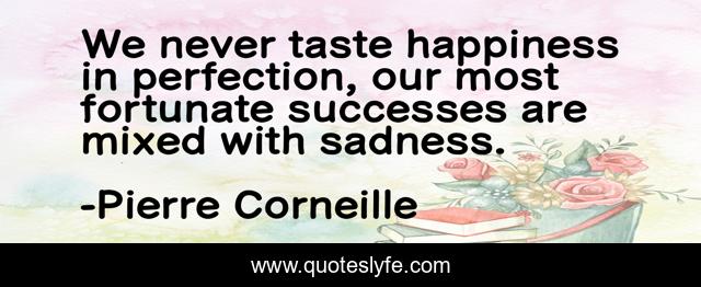 This page presents the quote "We never taste happiness in perfection, our most fortunate successes are mixed with sadness.". Author of this quote is Pierre Corneille. This quote is about sadness, perfection, sad,.