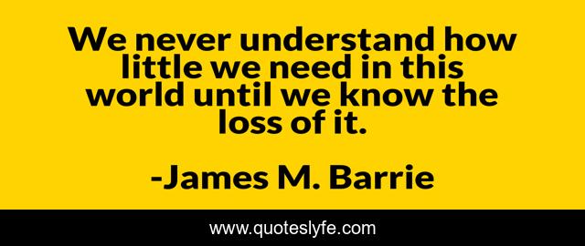 This page presents the quote "We never understand how little we need in this world until we know the loss of it.". Author of this quote is James M. Barrie. This quote is about loss, world,.