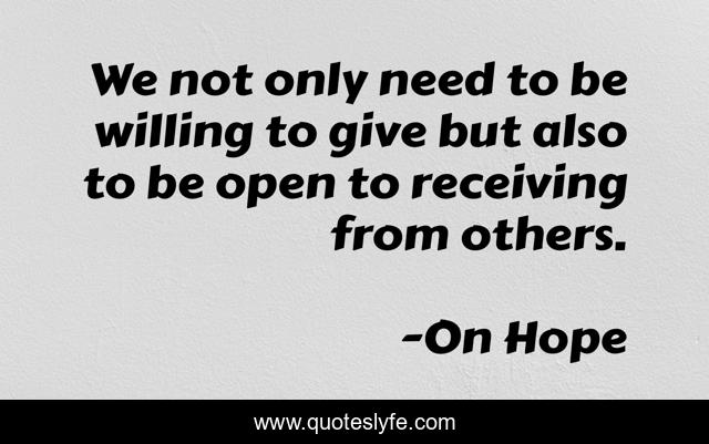 This page presents the quote "We not only need to be willing to give but also to be open to receiving from others.". Author of this quote is On Hope. This quote is about helping, people,.