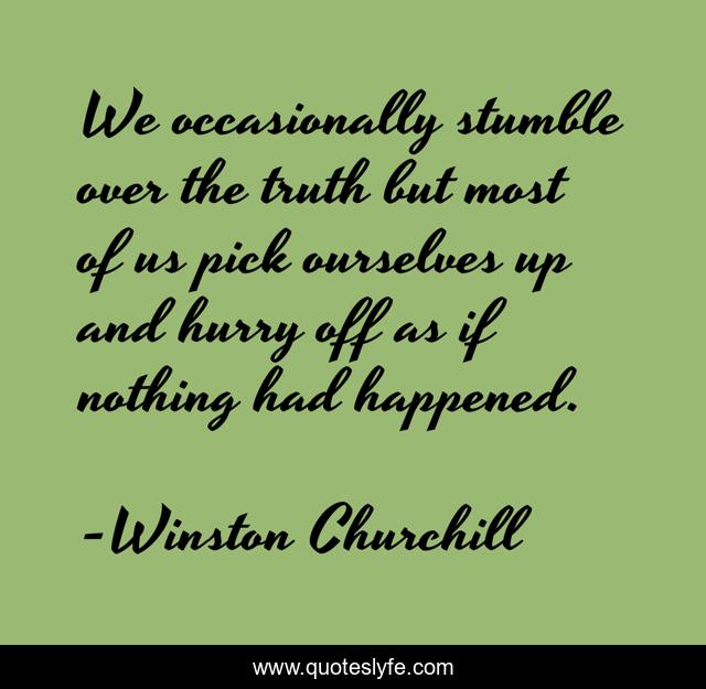 This page presents the quote "We occasionally stumble over the truth but most of us pick ourselves up and hurry off as if nothing had happened.". Author of this quote is Winston Churchill. This quote is about nothing, hurry, up,.