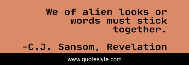 "C.J. Sansom, Revelation Quotes." Quoteslyfe.com, 2025. Mon. 08 Dec. 2025. <https://www.quoteslyfe.com/quote/We-of-alien-looks-or-words-must-102277>.