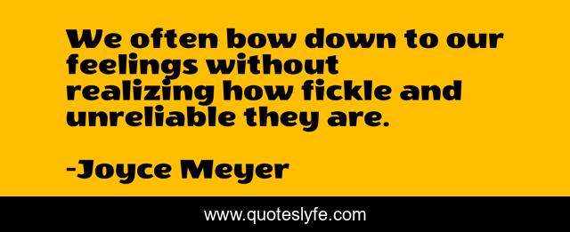 This page presents the quote "We often bow down to our feelings without realizing how fickle and unreliable they are.". Author of this quote is Joyce Meyer. This quote is about trust, feelings,.