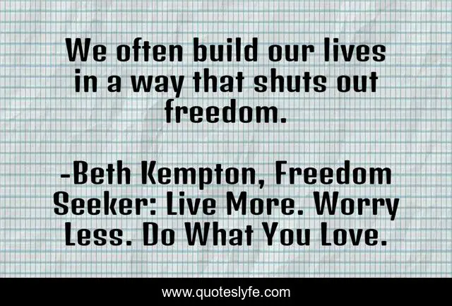 "Beth Kempton, Freedom Seeker: Live More. Worry Less. Do What You Love. Quotes." Quoteslyfe.com, 2025. Fri. 05 Dec. 2025. <https://www.quoteslyfe.com/quote/We-often-build-our-lives-in-a-15275>.