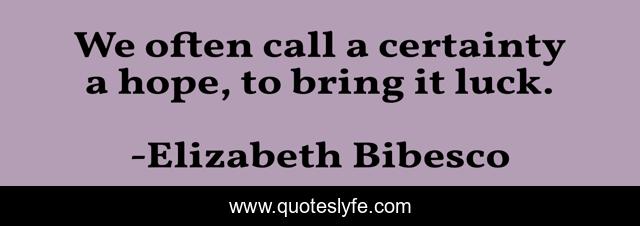 "Elizabeth Bibesco Quotes." Quoteslyfe.com, 2025. Sat. 06 Dec. 2025. <https://www.quoteslyfe.com/quote/We-often-call-a-certainty-a-hope-283242>.