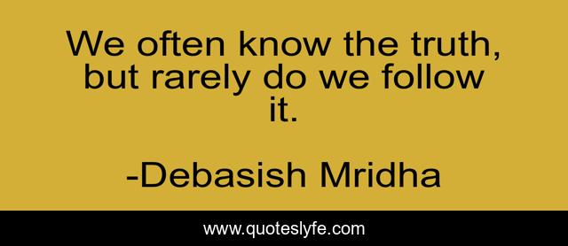 This page presents the quote "We often know the truth, but rarely do we follow it.". Author of this quote is Debasish Mridha. This quote is about miraboli, inspirational, oscar-wilde, follow-the-truth, philosophy, debasish-mridha, tagore, quotes, buddha,.