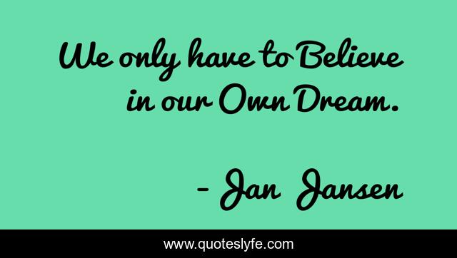 This page presents the quote "We only have to Believe in our Own Dream.". Author of this quote is Jan Jansen. .
