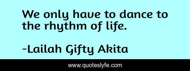 This page presents the quote "We only have to dance to the rhythm of life.". Author of this quote is Lailah Gifty Akita. This quote is about dance, wisdom-of-lailah-gifty-akita, life,.
