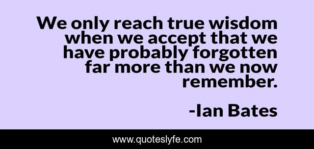 This page presents the quote "We only reach true wisdom when we accept that we have probably forgotten far more than we now remember.". Author of this quote is Ian Bates. This quote is about memory, wisdom,.