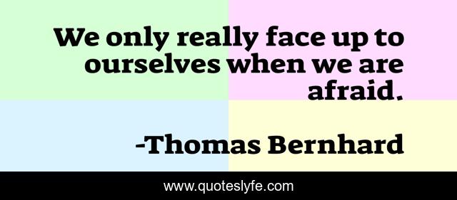 This page presents the quote "We only really face up to ourselves when we are afraid.". Author of this quote is Thomas Bernhard. .