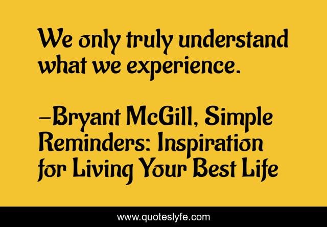 "Bryant McGill, Simple Reminders: Inspiration for Living Your Best Life Quotes." Quoteslyfe.com, 2025. Fri. 05 Dec. 2025. <https://www.quoteslyfe.com/quote/We-only-truly-understand-what-we-experience-139952>.