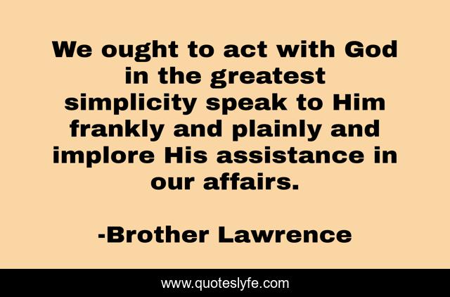 This page presents the quote "We ought to act with God in the greatest simplicity speak to Him frankly and plainly and implore His assistance in our affairs.". Author of this quote is Brother Lawrence. .