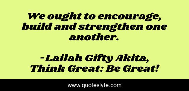 "Lailah Gifty Akita, Think Great: Be Great! Quotes." Quoteslyfe.com, 2025. Sat. 06 Dec. 2025. <https://www.quoteslyfe.com/quote/We-ought-to-encourage-build-and-strengthen-104503>.