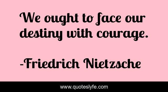 This page presents the quote "We ought to face our destiny with courage.". Author of this quote is Friedrich Nietzsche. This quote is about courage, destiny,.