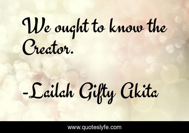 "Lailah Gifty Akita Quotes." Quoteslyfe.com, 2025. Sat. 06 Dec. 2025. <https://www.quoteslyfe.com/quote/We-ought-to-know-the-Creator-62222>.