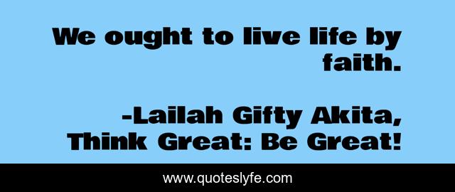 "Lailah Gifty Akita, Think Great: Be Great! Quotes." Quoteslyfe.com, 2025. Tue. 09 Dec. 2025. <https://www.quoteslyfe.com/quote/We-ought-to-live-life-by-faith-91709>.