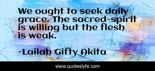 This page presents the quote "We ought to seek daily grace. The sacred-spirit is willing but the flesh is weak.". Author of this quote is Lailah Gifty Akita. This quote is about spirituality, christian-life, seek, grace,.