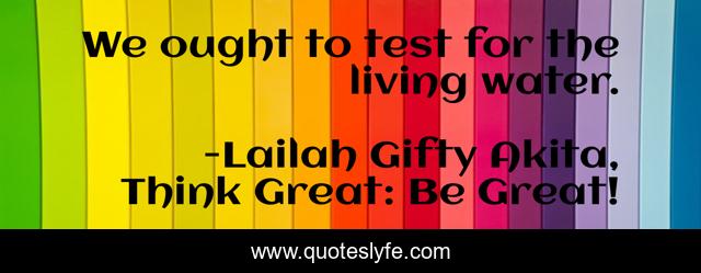 "Lailah Gifty Akita, Think Great: Be Great! Quotes." Quoteslyfe.com, 2025. Mon. 08 Dec. 2025. <https://www.quoteslyfe.com/quote/We-ought-to-test-for-the-living-62629>.