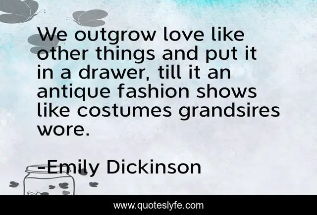 This page presents the quote "We outgrow love like other things and put it in a drawer, till it an antique fashion shows like costumes grandsires wore.". Author of this quote is Emily Dickinson. This quote is about love, affection,.