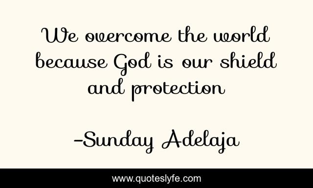 This page presents the quote "We overcome the world because God is our shield and protection". Author of this quote is Sunday Adelaja. This quote is about god, protection, shield, overcome, world,.