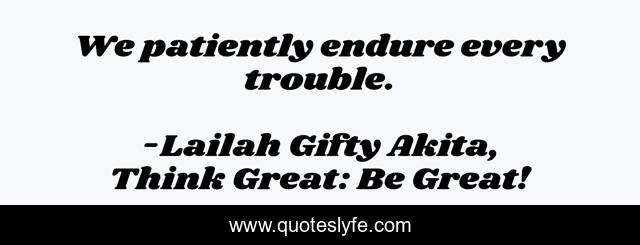 "Lailah Gifty Akita, Think Great: Be Great! Quotes." Quoteslyfe.com, 2025. Fri. 05 Dec. 2025. <https://www.quoteslyfe.com/quote/We-patiently-endure-every-trouble-94950>.