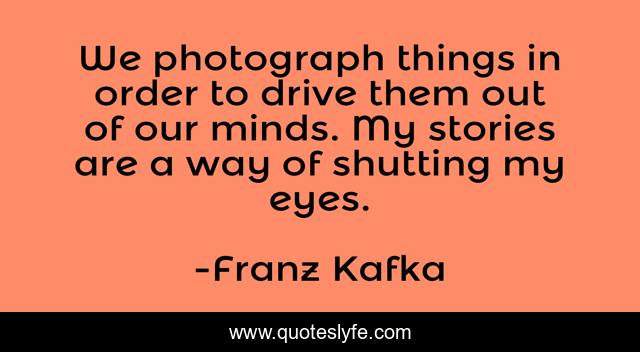 This page presents the quote "We photograph things in order to drive them out of our minds. My stories are a way of shutting my eyes.". Author of this quote is Franz Kafka. .