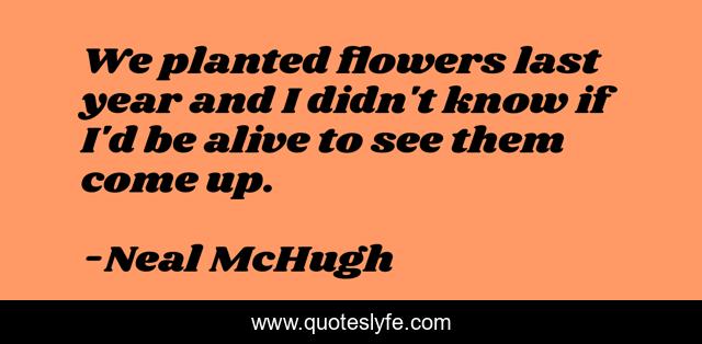 This page presents the quote "We planted flowers last year and I didn't know if I'd be alive to see them come up.". Author of this quote is Neal McHugh. This quote is about positive, confidence,.