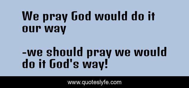 "we should pray we would do it God's way! Quotes." Quoteslyfe.com, 2025. Mon. 08 Dec. 2025. <https://www.quoteslyfe.com/quote/We-pray-God-would-do-it-our-117329>.