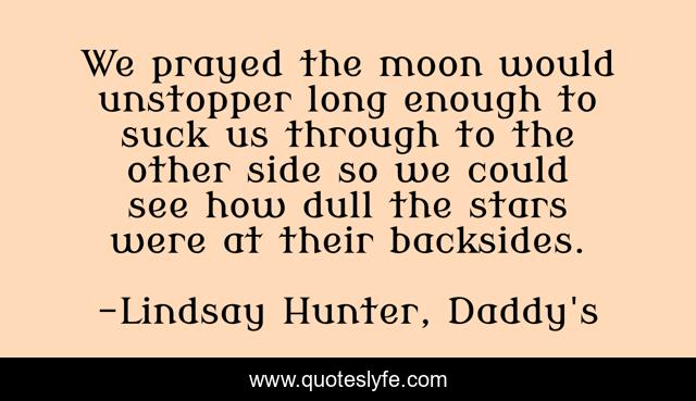 "Lindsay Hunter, Daddy's Quotes." Quoteslyfe.com, 2025. Fri. 05 Dec. 2025. <https://www.quoteslyfe.com/quote/We-prayed-the-moon-would-unstopper-long-197310>.